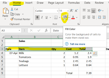 - Highlight the cells you want to colour