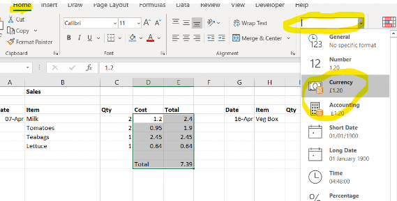 - Select the number format drop down (may say "general") . Then choose "currency"or "accounting" (I prefer accounting).