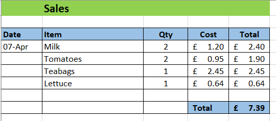 A well formatted spreadsheet should look something like this