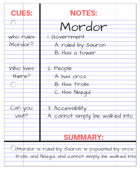 - It is well organised and easy to follow and review but can be tricky to do if a lesson is moving quickly and the teacher is not presenting information under headings and subheadings