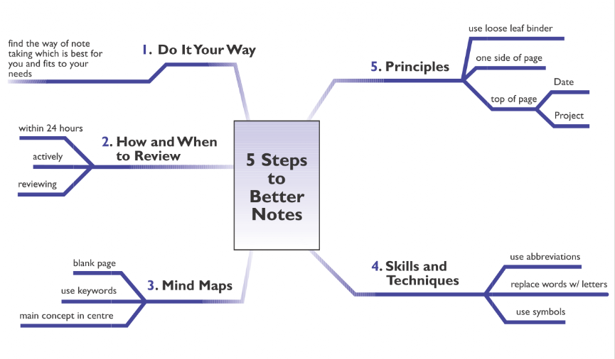 This is probably what you currently do. The Sentence note taking method is simply writing down each small topic as a short sentence. It can work well for fast paced lessons where a lot of information is being covered, but will leave your hand aching from a lot of writing.